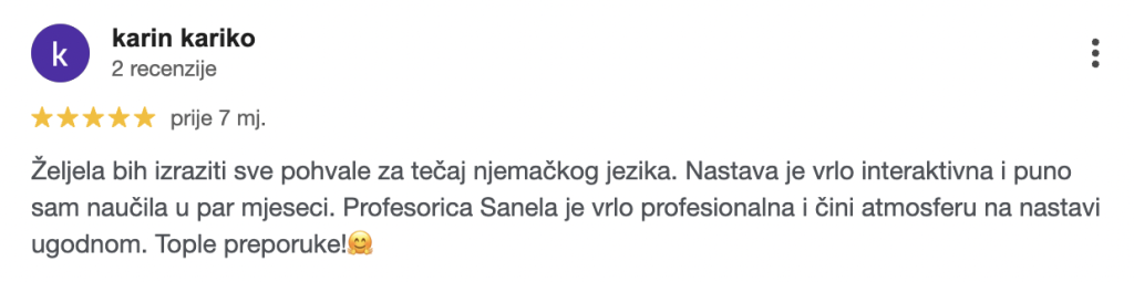 Nastava je interaktivna, kombinira razgovor, vježbe i praktične zadatke — kako biste njemački učili prirodno i učinkovito.