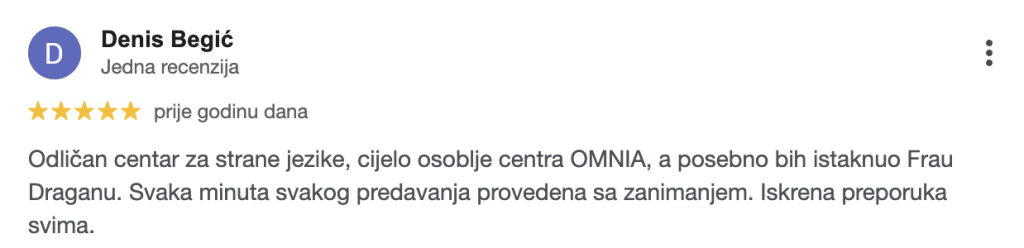 OMNIA Centar za strane jezike partnerska je škola ÖSD međunarodnog jezičnog instituta u Zagrebu, a što kažu naši polaznici o nama pročitajte kroz recenzije: